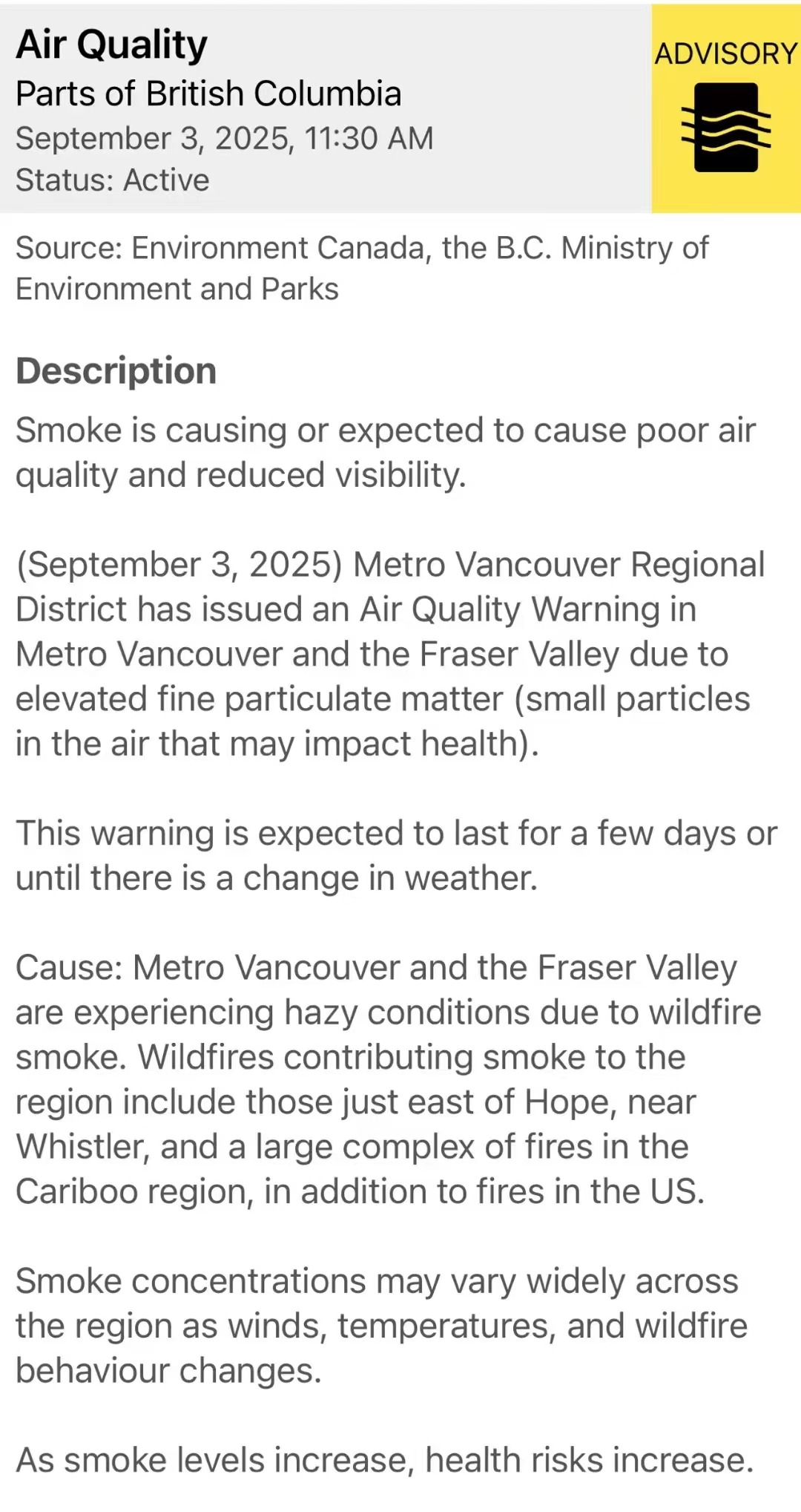 加拿大山火影响温馨提示